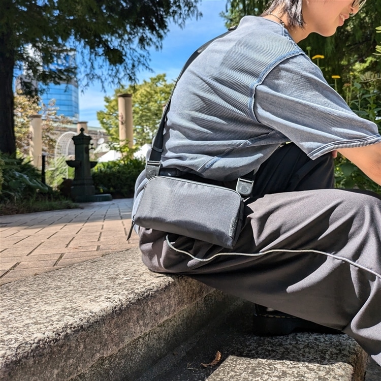 旅の必需品をコンパクトに携帯できるスリングバッグ。