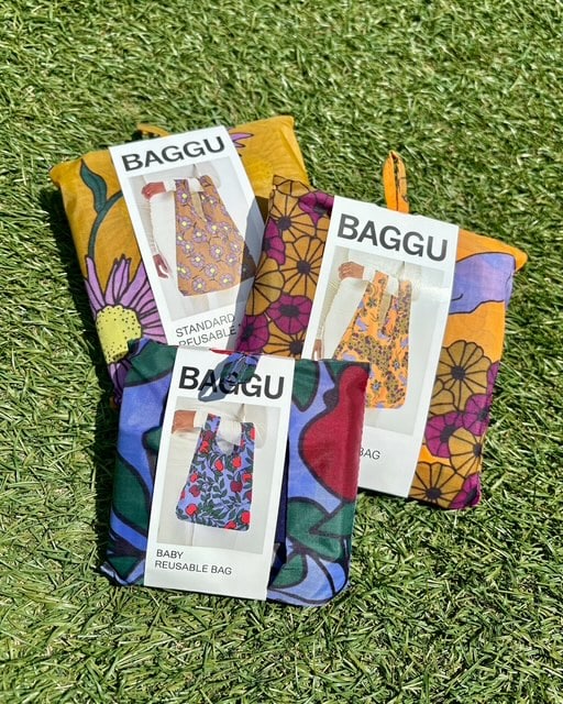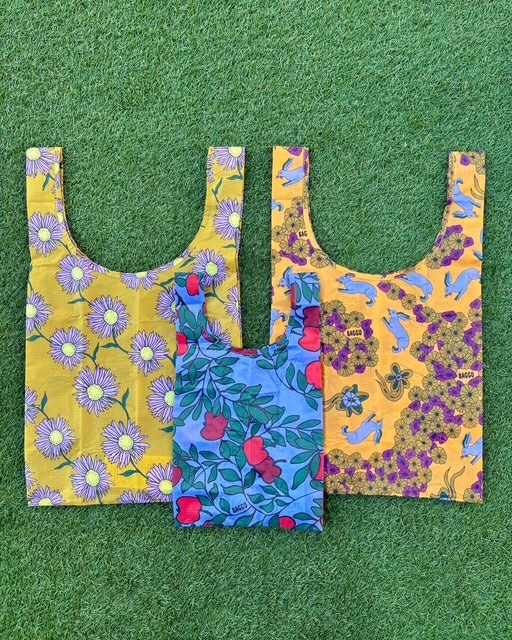 【Baggu/バグゥ】 ▶︎カラー:アップルツリー/オークルデイジー/オレンジワイルドラビット ▶︎素材:リップストップナイロン(100%リサイクル) ーーーーー ◼︎Standard ¥2,640(税込) Size:約W390×H640×D150mm ◼︎Baby ¥2,310(税込) Size:約W260×H470×D115mm