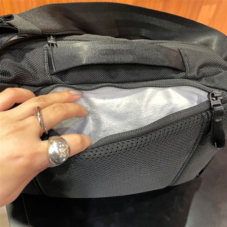 トップには電子機器類の持ち運びに適している、起毛素材を用いたアクセサリーポケットも!