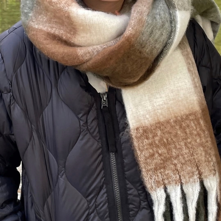 大きめのブロックチェック柄が柔らかい印象に仕立て上げてくれますね。