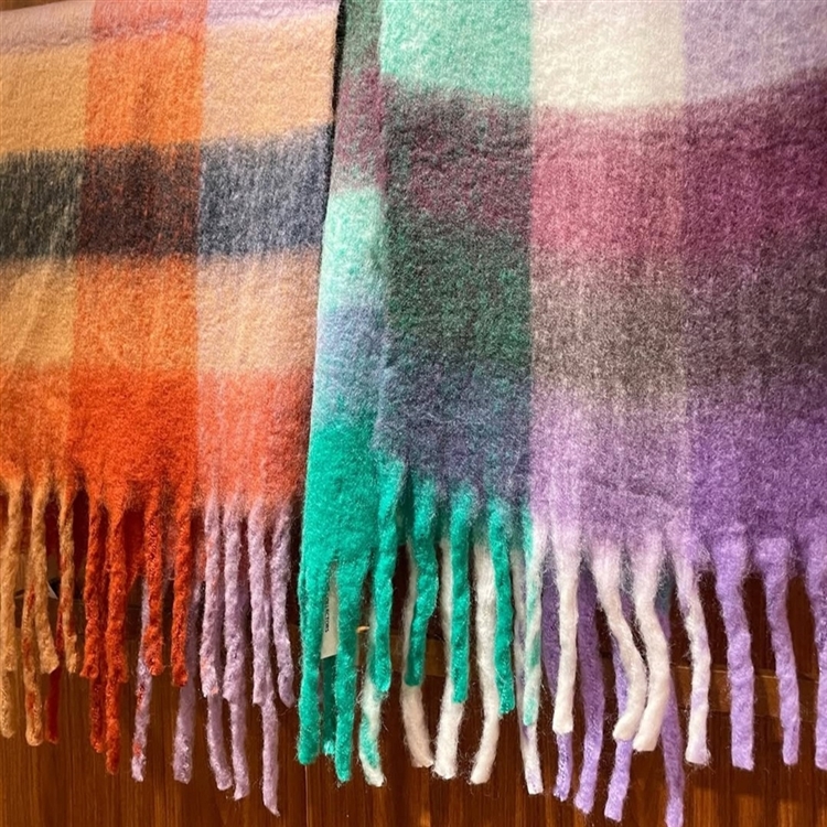 厚手の生地と大判サイズで暖かさと華やかさを兼ね備えたマフラー。