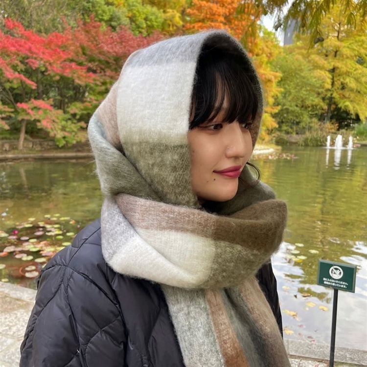 大判サイズだとバラクラバ巻きも余裕をもってできちゃいます!