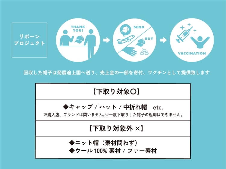 【帽子Re:BORN PROJECT】ご自宅にある不要な帽子持参でクーポンプレゼント!