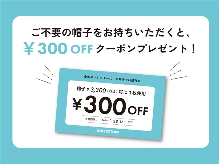 回収品1点につき帽子ご購入時にご利用頂ける¥300クーポンを進呈!