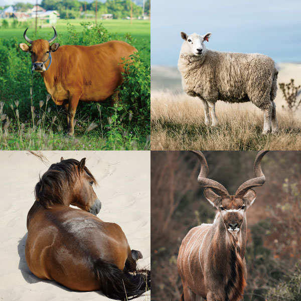 ■クーズー:大きくねじれた角をもった、南アフリカに生息するウシ科の動物。